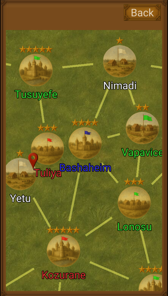 Clans (red, green, blue) have strengths and weaknesses against each other, like a rock-paper-scissors system. Mandatory contracts (rebellions, invasions, attacks) must be completed and cannot be skipped.